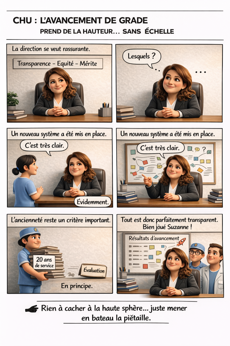 La gestion des avancements de grade au CHU suscite aujourd’hui de vives inquiétudes. Alors que les principes de mérite, d’équité et de transparence sont régulièrement mis en avant par l’administration, les pratiques constatées sur le terrain traduisent une réalité bien différente.